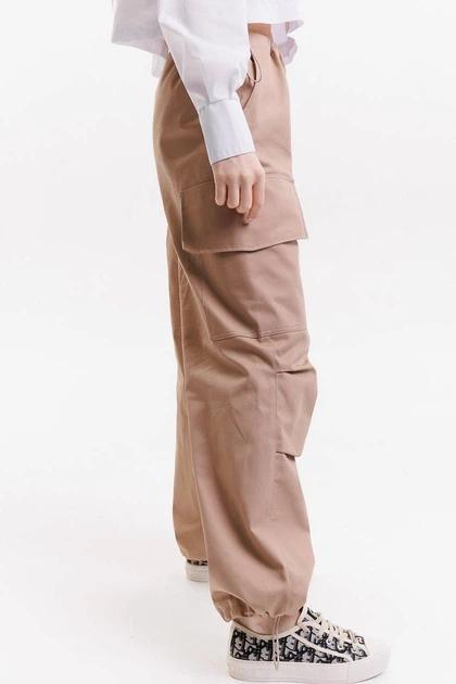Підліткові штани карго для дівчинки 134 розмір темно-бежеві 126941