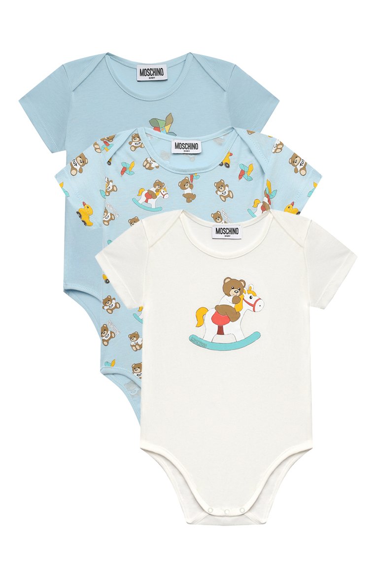 Комплект из трех боди MOSCHINO детское голубого цвета