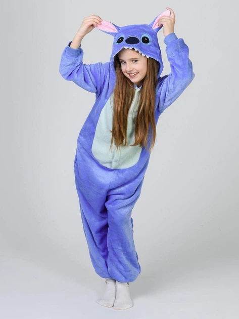 Детская Пижама Кигуруми Стич синий на молнии 120