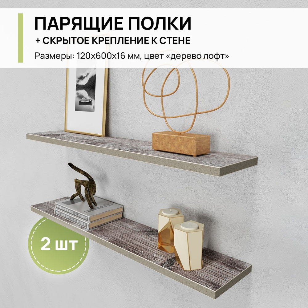 Полка Мебельная фабрика АЛИСА Настенная, 60х12х1.6 см, 2 шт.