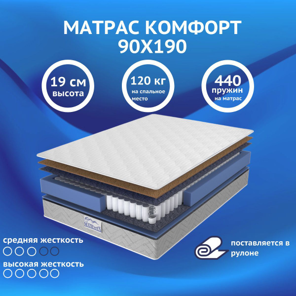 Матрас MATRATEX КОМФОРТ, Независимые пружины, 90x190 см купить c