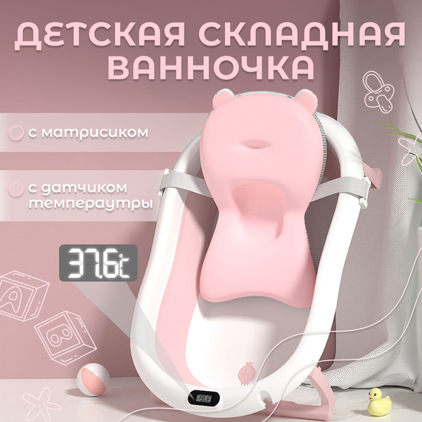 Ванночка для купания новорожденных складная с термометром и матрасиком