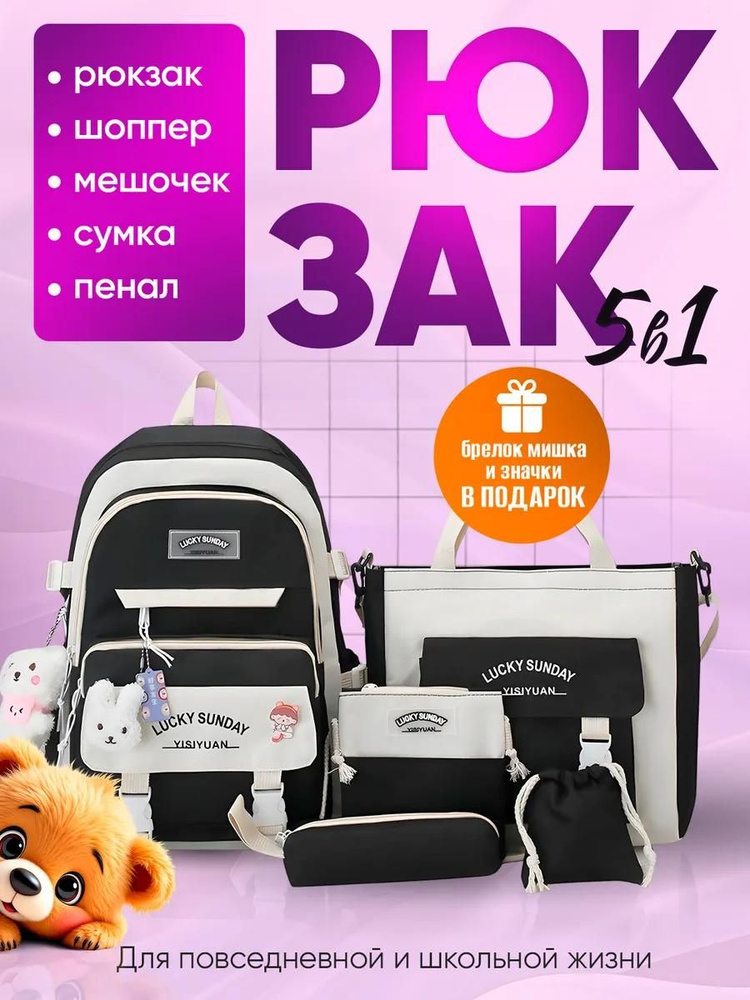 Рюкзак школьный 5 в 1 портфель для подростков купить на OZON по низкой